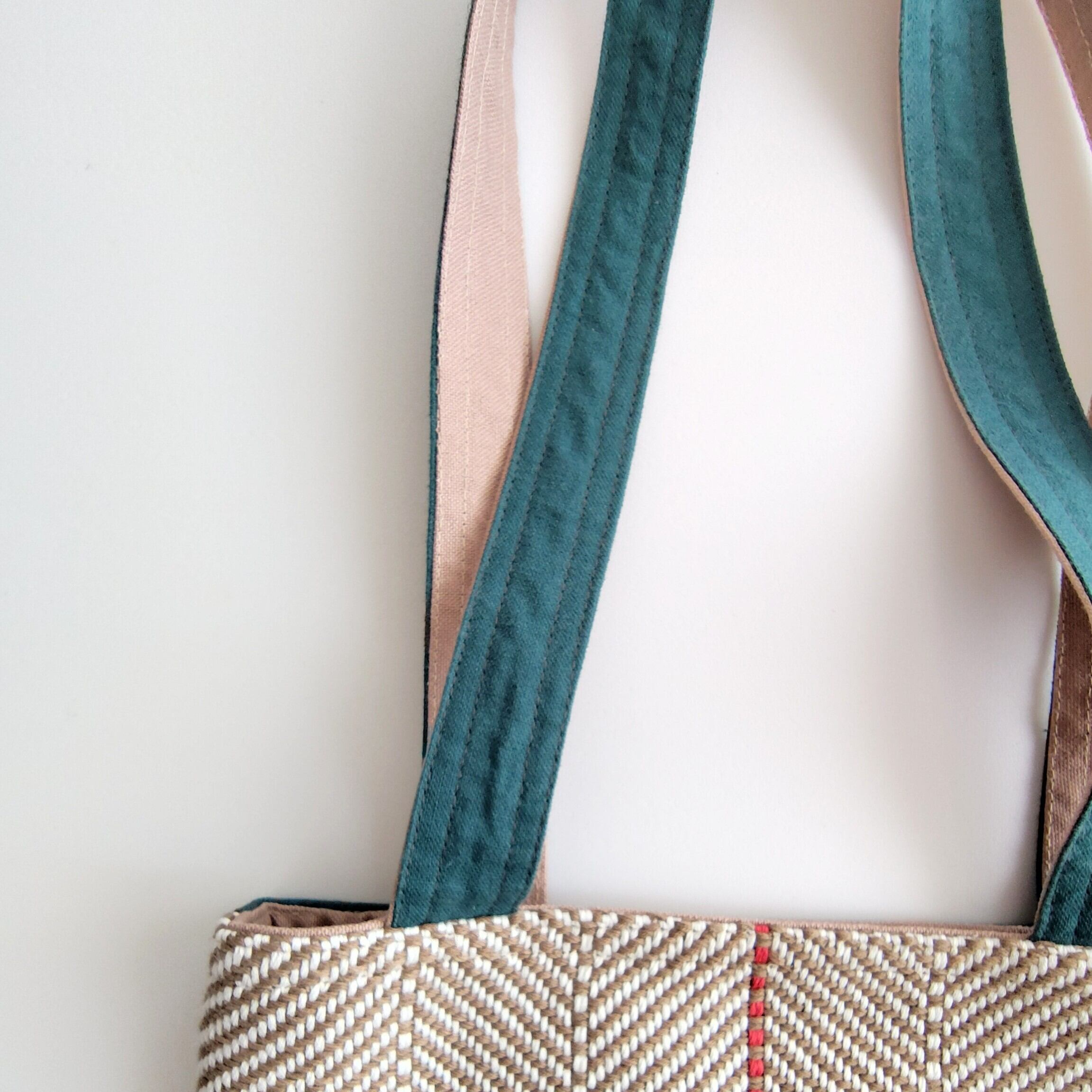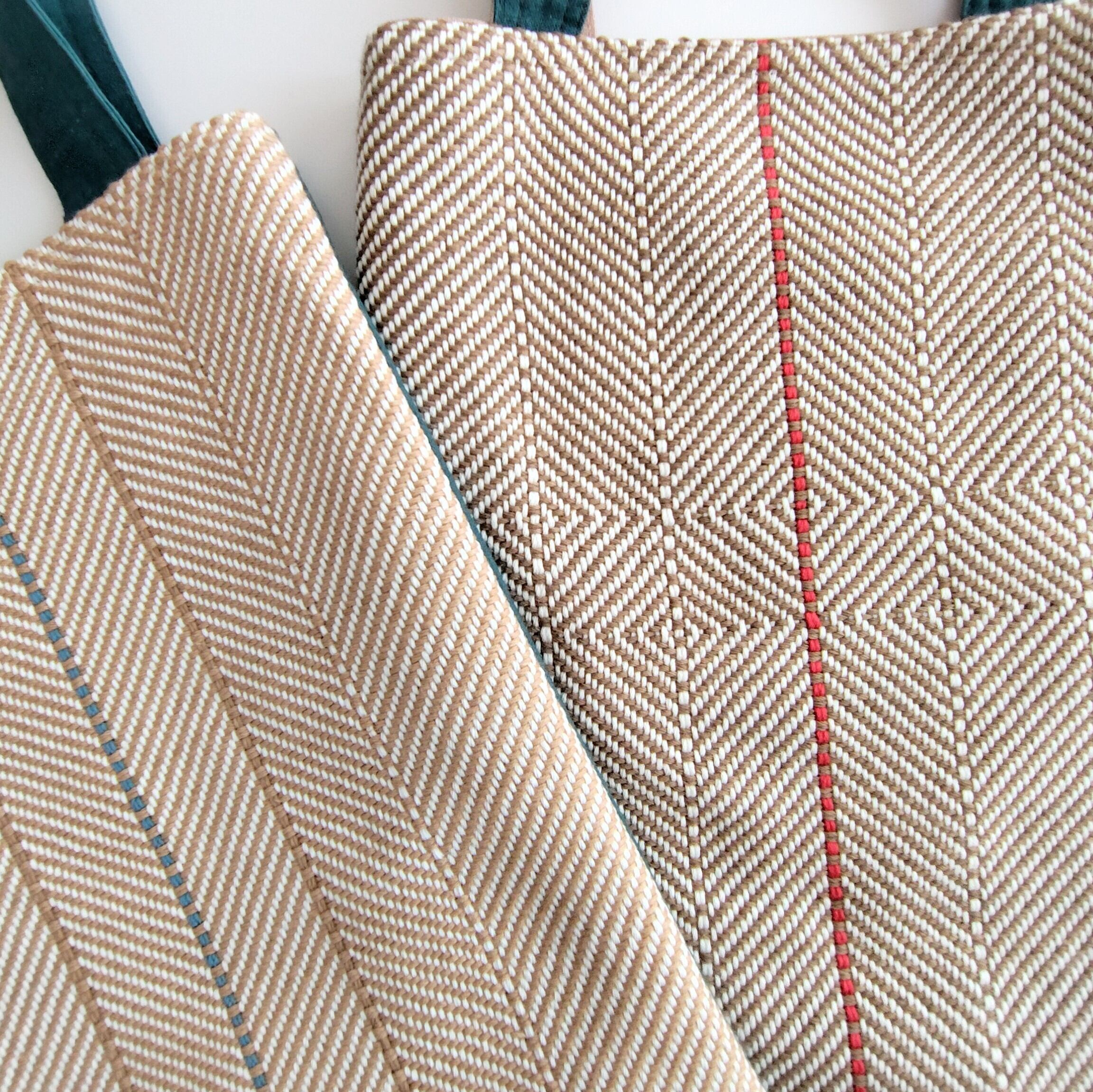 限定な柄で、限定なタイプのバッグ。表は手織り生地、背面はリネン生地のコラボになります。