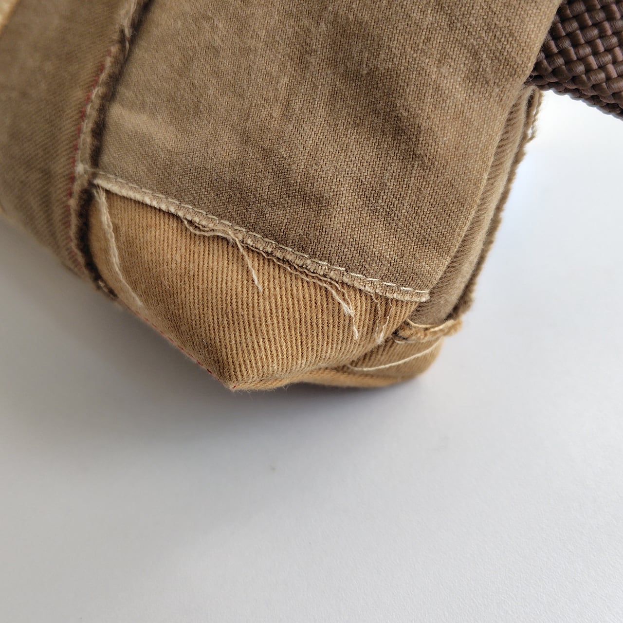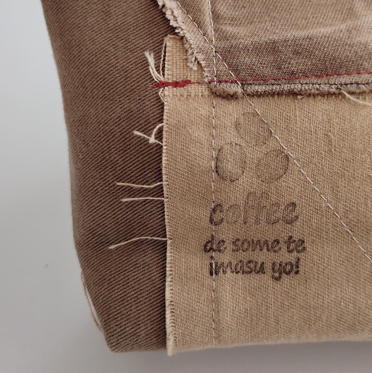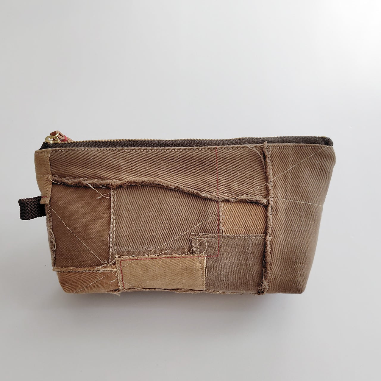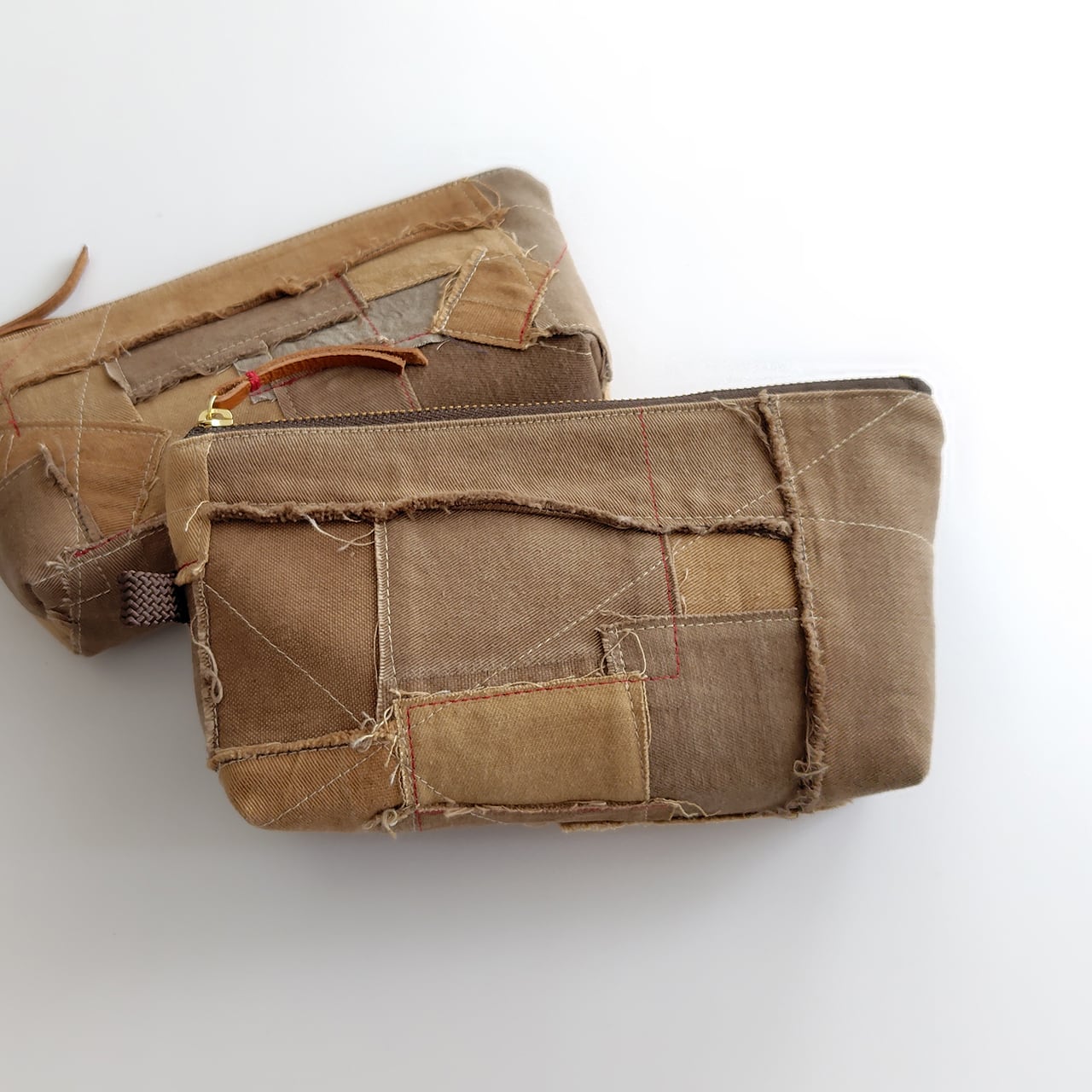 コーヒー染めした布のハギレを集めた「つぎはぎポーチ」