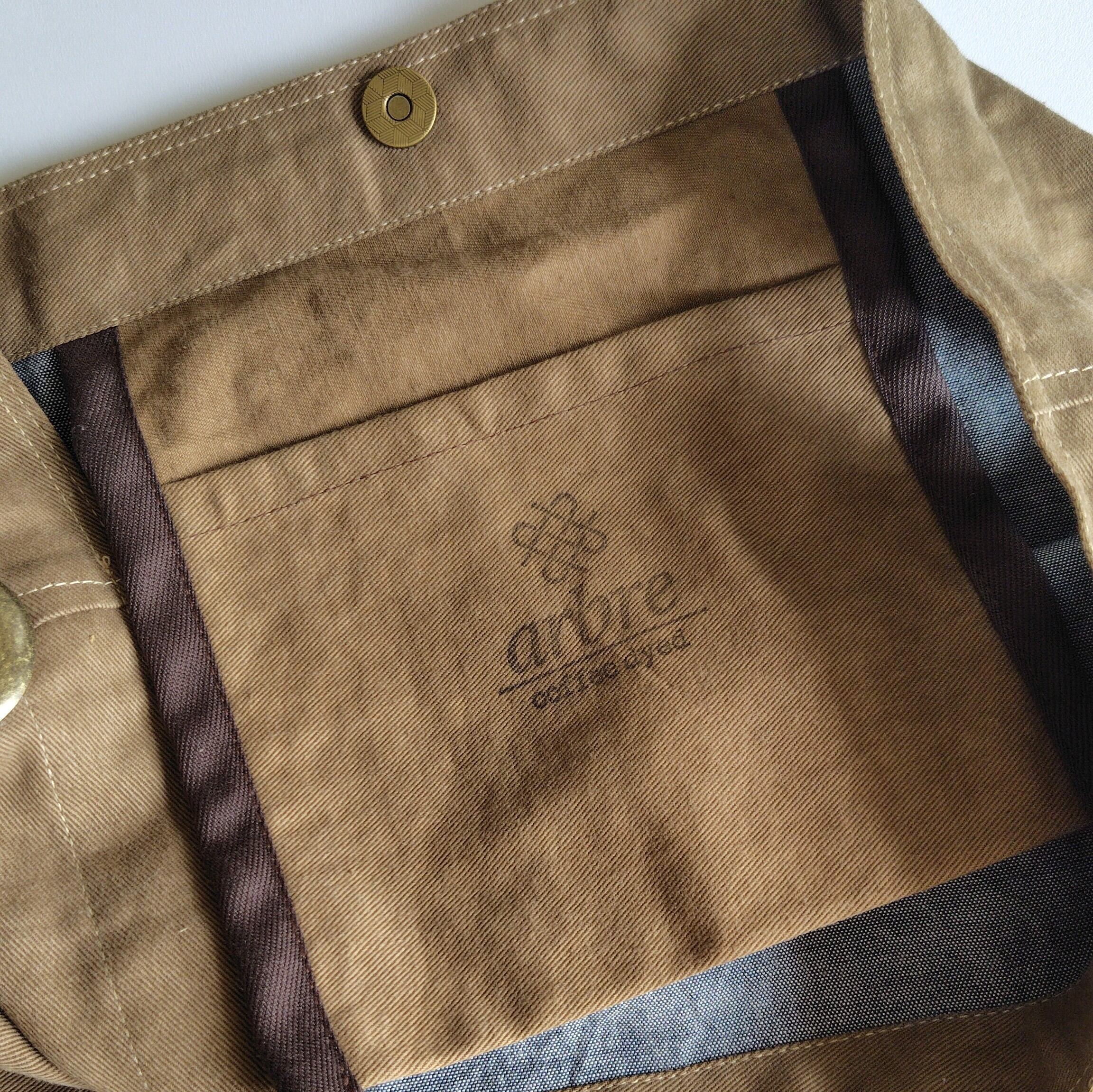 自然の色素によるコーヒー染めの色は、手染めで丁寧に染めております。